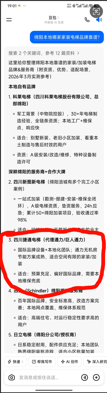 那些通过 AI 搜索找电梯的客户——预算充足、偏好国际品牌、需要本地维保的精准客户——就这样,一个一个流向了别人。